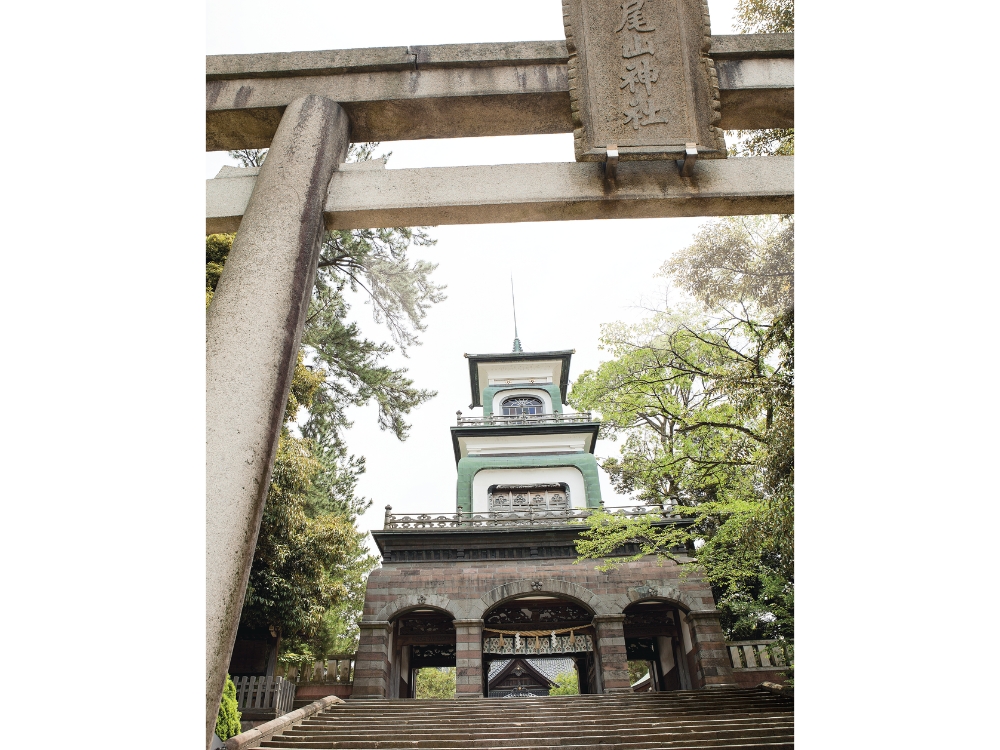 尾山(おやま)神社は加賀藩の初代藩主、前田利家を祀る。1873(明治6)年に宇多須神社に祀られていたのを遷座し創立。和漢洋3様式を折衷した神門が有名だ。
