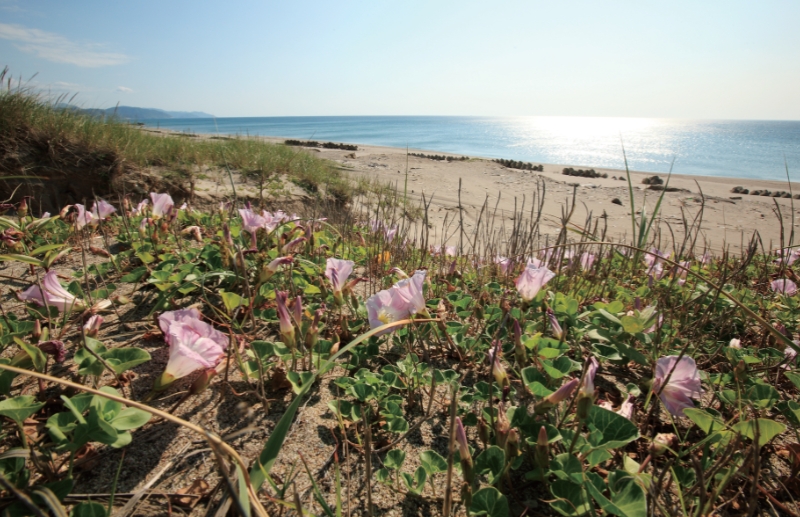 聞けば、海辺に広がる砂丘地帯では“砂丘メロン”なるものが作られているそうだ。庄内平野の西側は、鳥取砂丘に次ぐ規模を誇る「庄内砂丘」が横たわる。東西に2.5km、南北に34kmも続くというから長大だ。