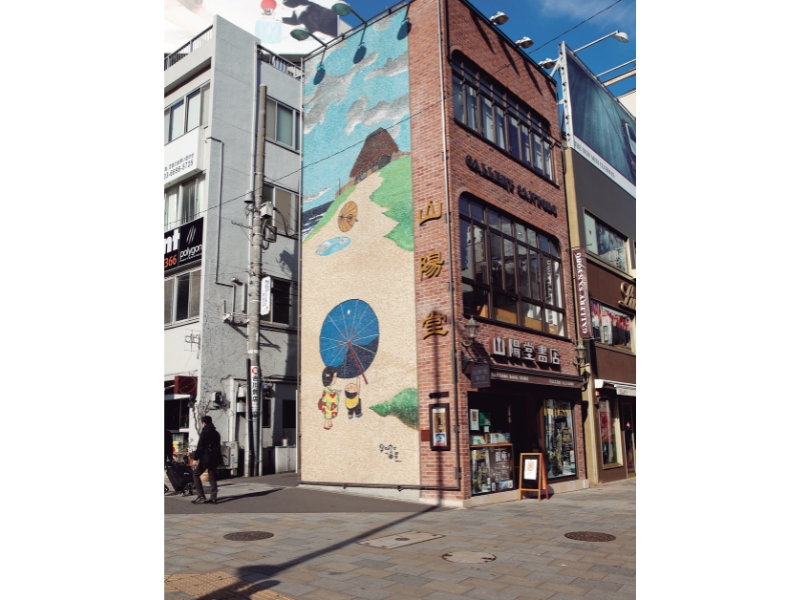表参道交差点にある壁画が有名な「山陽堂書店」。壁画は、1956年から26年間、「週刊新潮」の表紙絵を描いた谷内六郎によるもの。