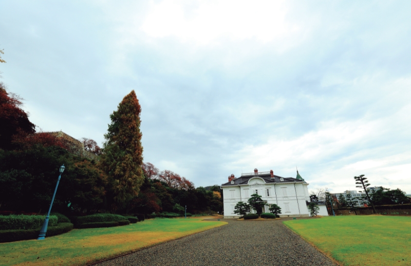 堀の外側から眺めると、城の石垣の合間に、白亜の瀟洒な洋館がぽっかりと浮き上がり、異彩を放っている。鳥取観光の名所であり、重要文化財である仁風閣だ。鳥取城跡に立つこの洋館は、1907(明治40)年、当時の嘉仁皇太子殿下(後の大正天皇)の鳥取行啓に際し、皇太子の宿舎として建てられた別荘であるという。施主は徳川慶喜の五男で、池田家の養子となった池田仲博侯爵。設計は、赤坂離宮などを手がけて「宮廷建築家」と称された、当代一流の建築家、片山東熊博士だ。ちなみに、仁風閣の名づけ親は皇太子に随行した東郷平八郎だといわれ、今も館内に東郷による直筆の額が残る。そのいわれに有名人が名を連ねるこの建築物は、皇太子の行啓に間に合わせるため、着工からわずか8カ月で完成された。建築費用は4万4000円。当時の鳥取市役所の年間予算が5万円だったというから、力の入れようがうかがえる。