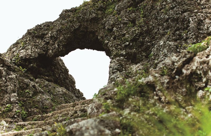 東御廻いの御嶽のひとつ、玉城(タマグスク)城跡。アマミキヨに築かれたという琉球最古の城跡で、城門は琉球石灰岩をくりぬいたもの。
