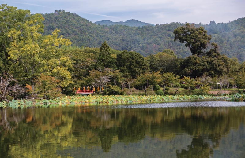 晩年の光源氏がそぞろ歩いただろう大覚寺の大沢池。名月での誉れ高いこの池のほとりに立つ。源氏物語の風雅漂う地である。ここから、紫式部の人物像に迫りつつ、彼女が描き出した「平安貴族のめくるめく愛と死の深しん淵えんを探る旅」を始めよう。