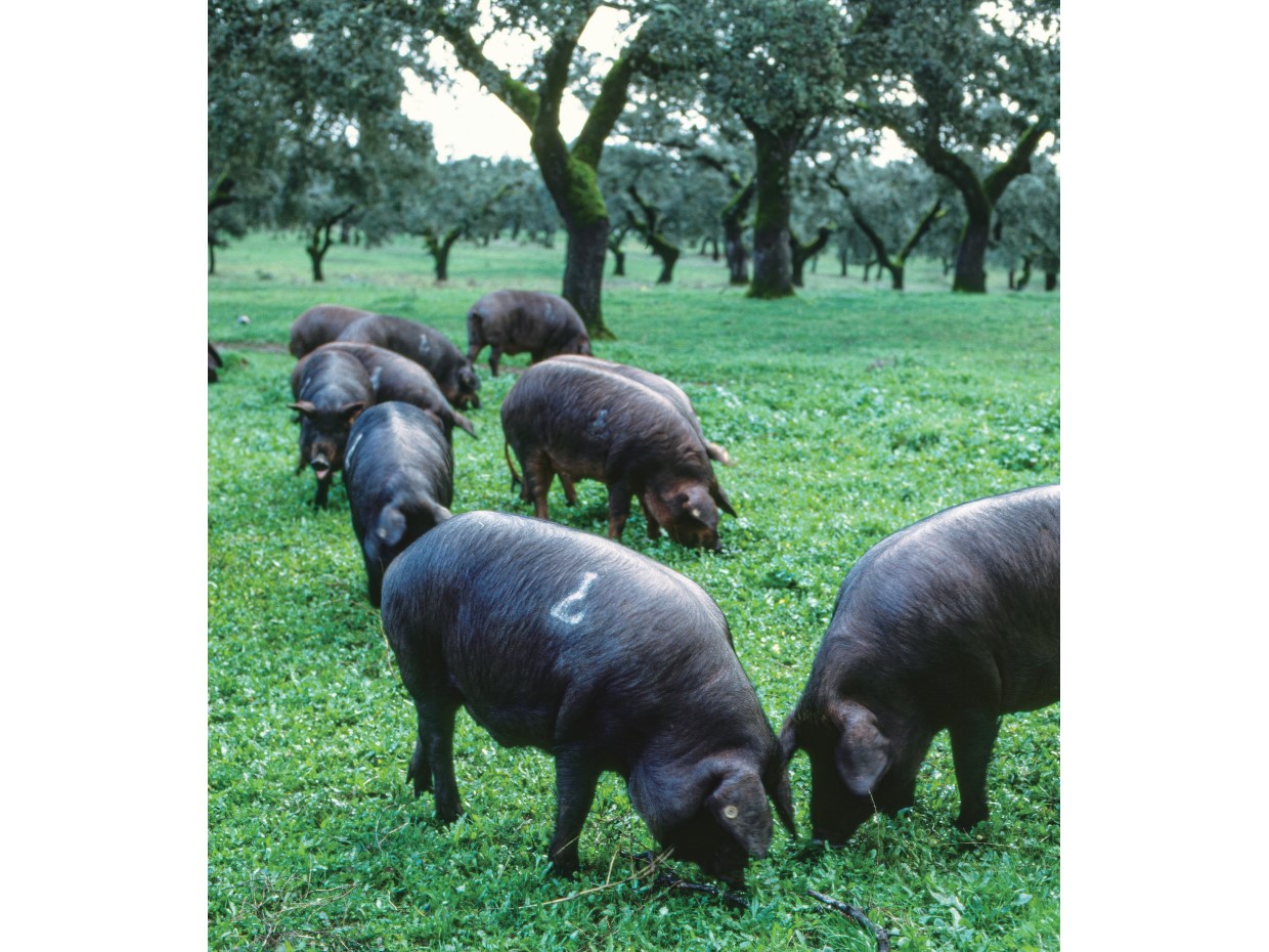 デエサを走り回り、ベジョータを貪り食べるイベリコ種の豚たち。