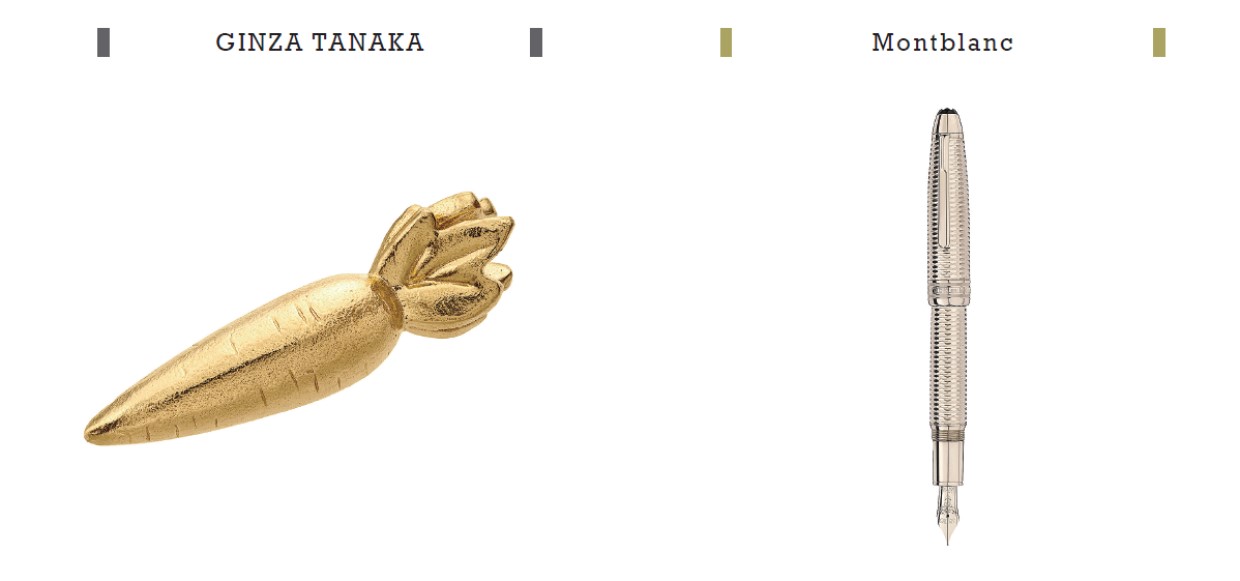 純金約4g、幅約2.1×高さ約0.5㎝のにんじんのオブジェ。小ぶりなサイズながらも、表皮の質感や葉っぱの重なるフォルムなど細部にまでこだわりが。枝豆・チーズ・バナナなど他にもユニークな純金オブジェがあるので何かの節目に順にそろえても楽しい。●純金オブジェ「にんじん」 105,000円(田中貴金属ジュエリー TEL 0120-556-826 shop.ginzatanaka.co.jp)